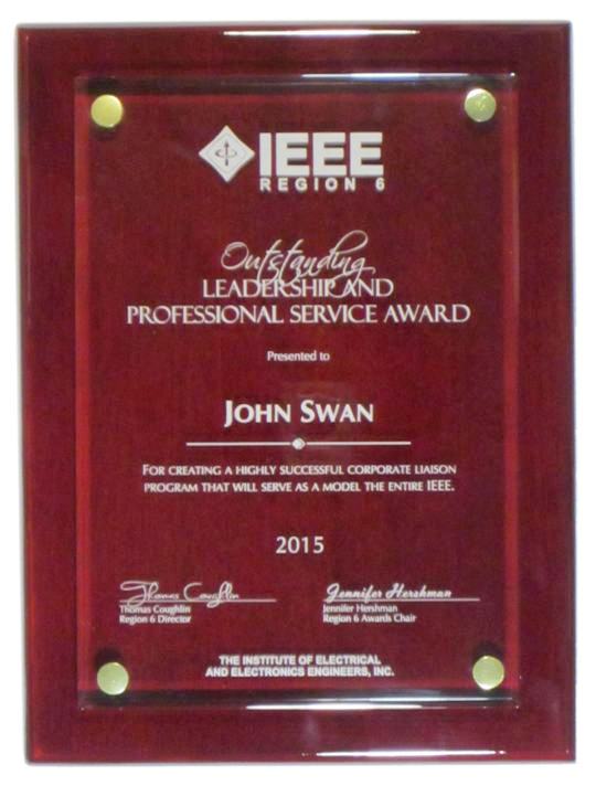 In 2015 John was Awarded the Outstanding Leadership and Professional Service Award (plaque here) by IEEE Region 6 – the Western 11 states of the U.S.